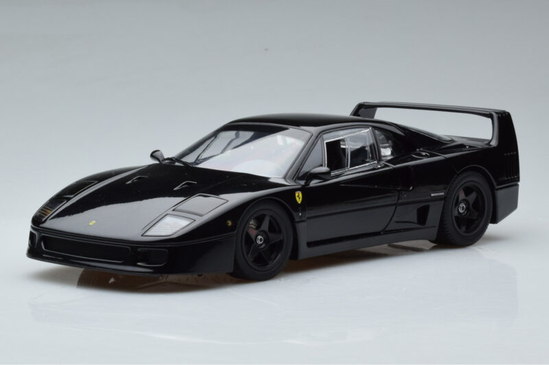 The Ferrari F40 Lightweight Melns Kyosho 1:18 is crafted from Metāls. Die-cast zinc alloy body with detailed plastic parts, rubber tires, and high-quality paint finish. Die-cast models are known for their weight, durability, and realistic feel.