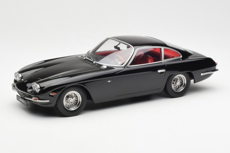 The Lamborghini 400 GT 2+2 Melns KK-Scale 1:18 is crafted from Metāls. Die-cast zinc alloy body with detailed plastic parts, rubber tires, and high-quality paint finish. Die-cast models are known for their weight, durability, and realistic feel.