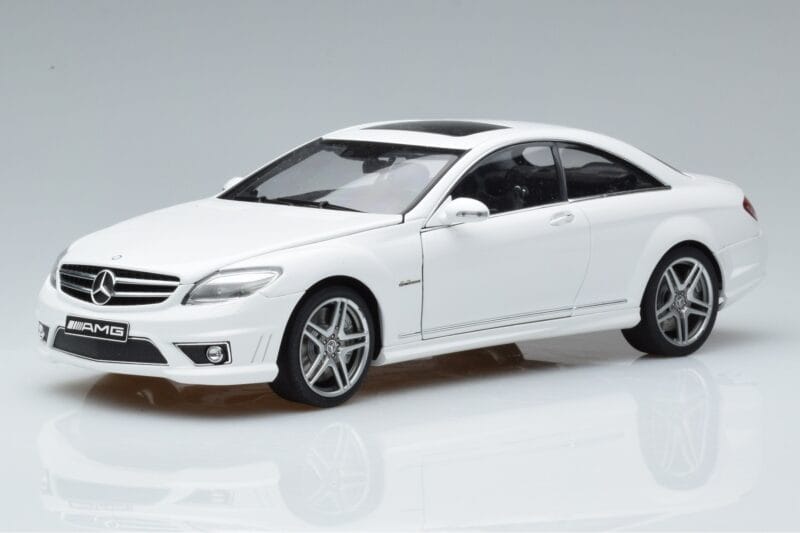 The Mercedes CL63 AMG C216 Balts AUTOart 1:18 is crafted from Metāls. Die-cast zinc alloy body with detailed plastic parts, rubber tires, and high-quality paint finish. Die-cast models are known for their weight, durability, and realistic feel.
