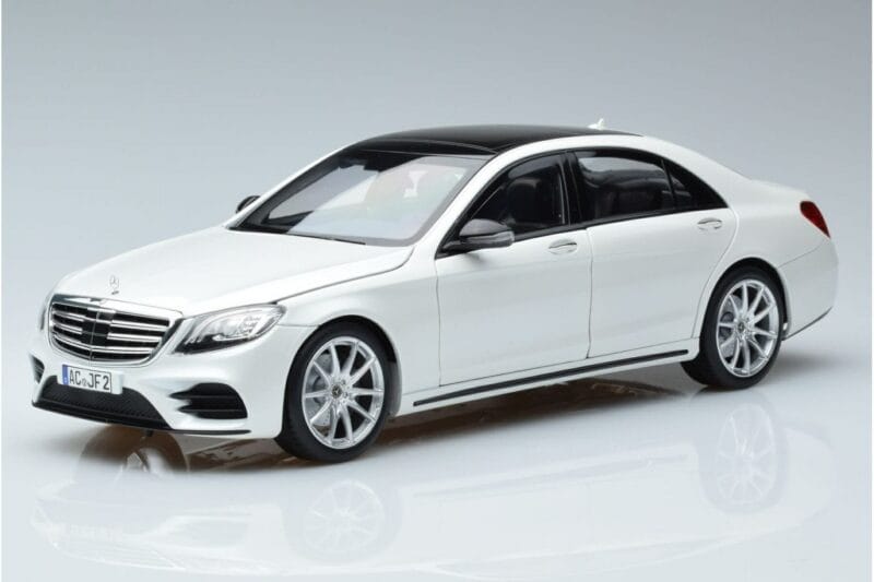 A 1:18 scale model measures approximately 25–28 cm (aptuveni 10–11 collas). The Mercedes S-Class W222 AMG Line Norev 1:18 is perfect for display in a glass cabinet or on a shelf.