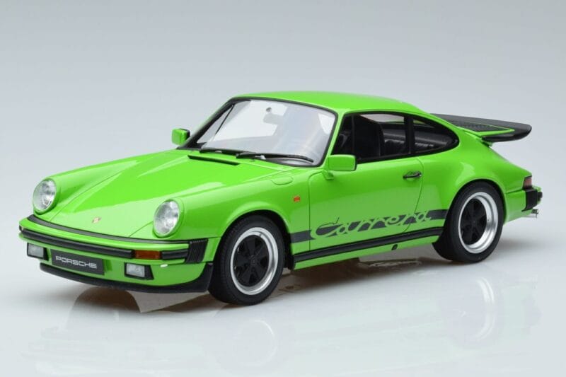 The Porsche 911 3.2 Carrera Laima Zaļš GT Spirit 1:18 is crafted from Sveķi. High-quality resin with hand-painted details and limited production runs. Resin models offer exceptional detail and are prized by serious collectors for their craftsmanship.