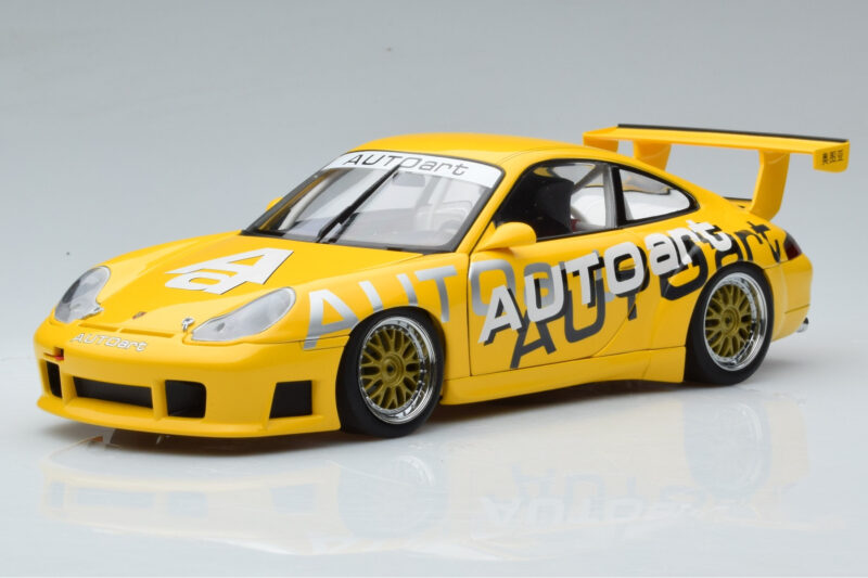 The Porsche 911 996 GT3 Cup AUTOart Livery AUTOart 1:18 is crafted from Metāls. Die-cast zinc alloy body with detailed plastic parts, rubber tires, and high-quality paint finish. Die-cast models are known for their weight, durability, and realistic feel.