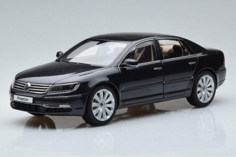 The Volkswagen Phaeton V6 Mazeppa Pelēks Kyosho 1:18 is crafted from Metāls. Die-cast zinc alloy body with detailed plastic parts, rubber tires, and high-quality paint finish. Die-cast models are known for their weight, durability, and realistic feel.